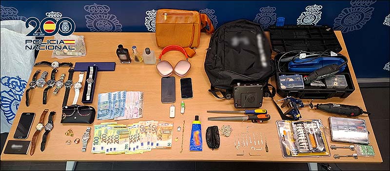 Une perquisition ultérieure à leur domicile à Torrevieja a révélé un butin de biens volés : bijoux, montres de designer et argent liquide, censés être liés à plusieurs cambriolages non résolus. De nombreux objets ont déjà été restitués à leurs propriétaires legitimes.